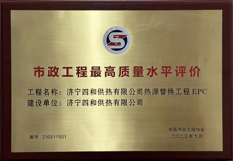 日前,中國市政工程協(xié)會發(fā)布《關(guān)于公布2023年度通過市政工程最高質(zhì)量水平評價工程的通知》,其中濟寧四和供熱有限公司熱源替換工程EPC名列其中。該獎項由中國市政工程協(xié)會組織評審,是市政工程行業(yè)在工程質(zhì)量方面最高質(zhì)量水平評價,代表市政工程行業(yè)同時期國內(nèi)先進水平。